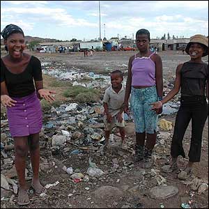 Divided township The differences in the fortunes of Soweto's residents are vast. Innocentia Mphatsoe (second from right) has found herself on the wrong side of the divide. The fashion-conscious 15-year-old lives with her mother in a corrugated iron shack, relying on neighbours for food. She says unsightly rubbish shows people have no pride in her area. |
