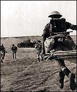 Montgomery had the reverse plan and wanted somehow to get through the mine fields and attack through the German lines - going west and, hopefully, carrying on through Libya and Tunisia and onwards, eventually leaving the Afrika Korps out of North Africa. At home, first reports in the papers and on the radio were conservative about what was happening. On 24 October, the Times said: "The latest information from the western desert, is that apart from patrol activities, there is nothing to report." However, the next day, it said that "at night the guns have made a barrage like an earthquake". The correspondent wrote: "A man told me that the Germans and Italians alike were badly shaken by the heavy barrage which the Eighth Army attack opened." On the 27th, the paper said: "Eighth Army holding on to new positions - 1450 Axis prisoners taken." The next day said: "Allied progress in desert battle," and on the 29th it said "Axis forces hurled back!" They also said the RAF had had victories in the air and was now getting on top in the air battle. Delight Eventually, from this victory at El Alamein, in three months we had swept from the east to where they met a British and American fleet at Tripoli. In history, Winston Churchill would write in The Hinge of Fate his famous verdict: "Before Alamein we never had a victory. After Alamein, we never had a defeat." At that time, at home, everyone was of course delighted by the news. In the UK, many church bells rang for the first time since the beginning of war - they were usually silenced, only to be rung if the Germans had invaded. The pubs were now full - people now savouring the taste of victory. Although it was early days, everyone needed to know that this might be the turn of the tide in the war. At last it was time to enjoy these special victory days and at home we had a big party, as did people in thousands of homes throughout the country. We children were allowed to stay up, while our home was filled with relatives, friends and people we had only known recently.