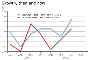 In the event, things turned out rather well. The pound fell, but then rose again. (It is now high - above its target value in the ERM). Inflation has stayed surprisingly benign since we left. And as for economic policy, Britain's way of doing things is now respected worldwide - 10 years is obviously a long time in economics. Deliberate recession So what lessons might we draw about the whole experience? Was it really the disaster it is now thought to be? Was there anything to be said for it? Well, first it is worth pointing out that statisticians now tell us our economy was growing significantly faster in the ERM than the published figures suggested at the time. After the statistics were revised and corrected, average growth was about 0.3% faster than the statistics said in late 1992. That is a considerable difference. The economy over these two years had 2% more growth in it than we had thought.