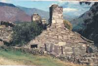 Hen gerrig Cerrig o'r mynydd -a llechi wrth gwrs - a ddefnyddid i godi'r tai, ac mae'n bur debyg, yn ôl y llyfr, bod cerrig o safleoedd Oes yr Haearn hefyd wedi cael eu defnyddio.