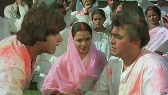 इसके बाद साल 1975 में आई फ़िल्म 'शोले'. रामगढ़ पर खूंखार डकैतों के हमले से अनजान गांव वाले 'होली के दिन दिल खिल जाते हैं' पर झूमते नाचते नज़र आते हैं.