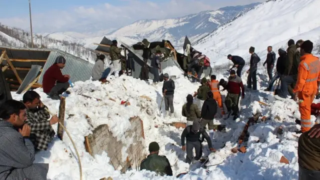 हिमस्खलन वाले इलाके पर पहुंचे एक स्थानीय मीडियाकर्मी खुर्शीद आलम ने बीबीसी को बताया कि वहां बेहद दर्दनाक मंजर था.