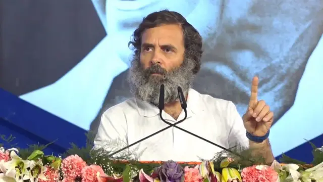 राहुल गांधी ने कहा, "अदानी जी और मोदी जी एक हैं और देश का पूरा का पूरा धन, एक व्यक्ति के हाथ में जा रहा है."