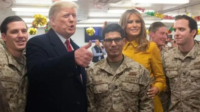 अमरीकी राष्ट्रपति डोनल्ड ट्रंप ने क्रिसमस के मौके पर इराक़ में मौजूद अमरीकी सैनिकों से मुलाक़ात की. ट्रंप पूर्व निर्धारित कार्यक्रम के बिना इराक़ पहुंचे. उनके साथ अमरीका की फर्स्ट लेडी मेलानिया ट्रंप भी थीं.