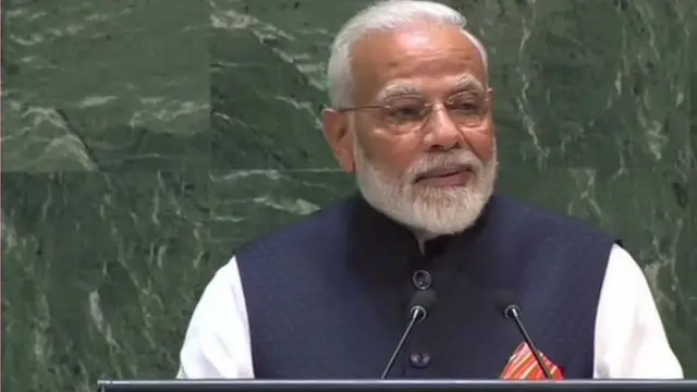 इससे पहले उन्होंने कहा कि संयुक्त राष्ट्र महासभा में लोगों के बीच इसलिए हैं क्योंकि भारत में लोगों ने जनतांत्रिक तरीक़े से उनके हक़ में अपना जनादेश दिया है.