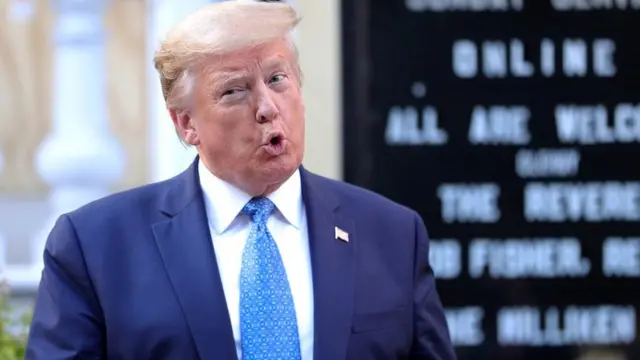 व्हाइट हाऊस से टीवी पर भाषण देने के बाद राष्ट्रपति ट्रंप अपने सुरक्षाकर्मियों के साथ पास ही के एक चर्च में गए.