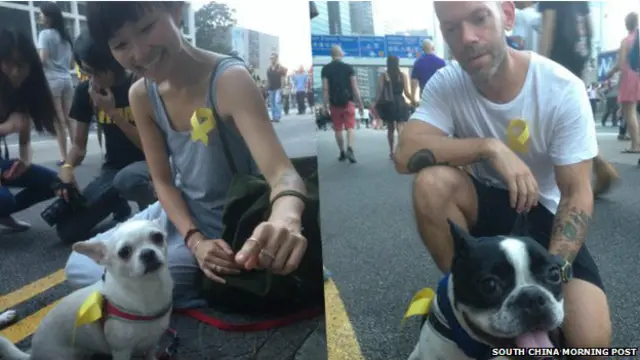 हांगकांग में हो रही लोकतंत्र समर्थक रैलियों में सिर्फ लोग ही नहीं आ रहे हैं, लोगों के साथ उनके पालतू कुत्तों की भी कतारें लगी हुई हैं.