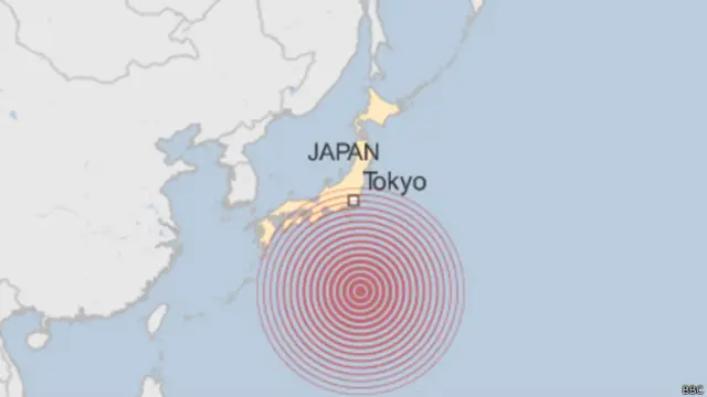 अमरीकी जियोलॉजिकल सर्वे (यूएसजीएस) के मुताबिक भूकंप की तीव्रता 7.8 थी और इसका केंद्र राजधानी टोक्यो से 874 किमी दूर था.