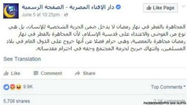 लेकिन जब मिस्र में सरकार समर्थित एक इस्लामी संस्था ने सभी मजहबों के लोगों को सूरज डूबने से पहले सार्वजनिक जगहों पर खाने की मनाही करते हुए आदेश जारी किया तो फ़ेसबुक पर इसकी तीखी प्रतिक्रिया हुई.
