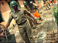 पुलिस का तर्क है कि जब मार्च में पुलिस ने फायरिंग की थी तो उस पर ख़ासी प्रतिक्रिया हुई थी और शोर हुआ था, इसलिए वो इस बार कार्रवाई नहीं कर रही है. प्रधामंत्री मनमोहन सिंह ने पश्चिम बंगाल के नंदीग्राम में पैदा हुई स्थिति पर चिंता जताई है. जिन इलाक़ों से मार्क्सवादी कम्युनिस्ट पार्टी के समर्थकों को खदेड़ दिया गया था, उन अधिकतर इलाक़ों पर उन्होंने दोबारा कब्ज़ा जमा लिया है. पश्चिम बंगाल की सरकार ने केंद्र सरकार से केंद्रीय रिज़र्व पुलिस बल (सीआरपीएफ़) लगाए जाने की माँग की है और केंद्रीय गृह मंत्री शिवराज पाटिल कह चुके हैं कि केंद्र ऐसा करने को तैयार है. राज्य के मुख्य सचिव एके देब ने कहा है कि दो-तीन दिन में केंद्रीय पुलिस बल की तैनाती हो सकती है. इस पर एक विवाद भी छिड़ गया है और विपक्षी तृणमूल कांग्रेस ने माँग की है कि यदि सीआरपीएफ़ को तैनात किया जाता है तो उसे आज़ादी से काम करने देना चाहिए. तृणमूल कांग्रेस का ये भी कहना है कि सीआरपीएफ़ को स्थानीय पुलिस के अधीन काम करने के लिए बाध्य न किया जाए. उधर वाम मोर्चे के कुछ घटक दलों का मानना है कि पुलिस तैनात करने का कोई फ़ायदा नहीं है और विपक्षी दलों के साथ बातचीत कर इस पूरे मसले का राजनीतिक हल निकाला जाना चाहिए. | इससे जुड़ी ख़बरें नंदीग्राम पर बंगाल सरकार से रिपोर्ट तलब02 मई, 2007 | भारत और पड़ोस नंदीग्राम में हिंसा, दो लोग मारे गए29 अप्रैल, 2007 | भारत और पड़ोस बुद्धदेब पर भारी पड़े बुद्धिजीवी01 अप्रैल, 2007 | भारत और पड़ोस नंदीग्राम मामले में दस गिरफ्तारियां17 मार्च, 2007 | भारत और पड़ोस नंदीग्राम में चल रही है वर्चस्व की लड़ाई16 मार्च, 2007 | भारत और पड़ोस नंदीग्राम में गोलीबारी पर संसद में हंगामा15 मार्च, 2007 | भारत और पड़ोस पुलिस की गोली से 10 से अधिक मरे14 मार्च, 2007 | भारत और पड़ोस | ||||||||||||||||||||||||||||||||||||||||||||||||||||||||||||||||||||||||||||||||||||||||||