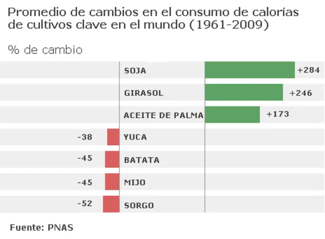 "También incluye cultivos que no eran tan importantes hace 50 años pero que se han vuelto muy relevantes ahora, particularmente los cultivos oleaginosos como la soja", dijo el científico a la BBC.
