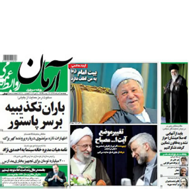 مطهره شفیعی در گزارشی که <link type="page"><caption> روزنامه آرمان</caption><url href="http://www.armandaily.ir/Modules/Main/SendToFriend.aspx?News_Id=41854&V_News_Id=" platform="highweb"/></link> آن را در صفحه اول خود به چاپ رسانده است، به تغییر موضع آیتالله مصباح یزدی در انتخابات ریاست جمهوری ایران پرداخته است.