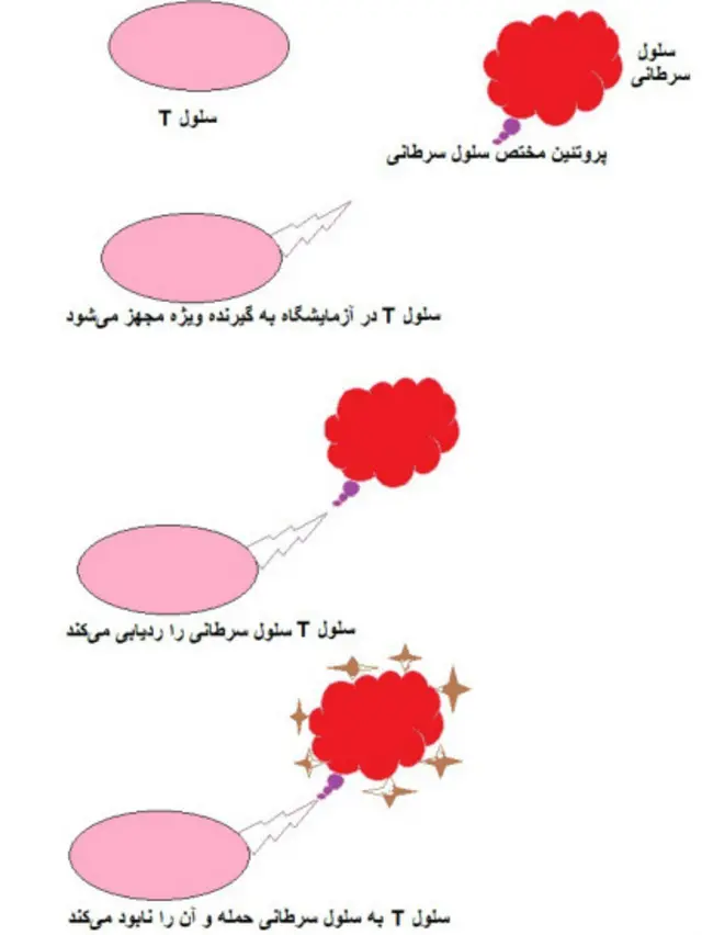 این سلولها در بدن تکثیر پیدا میکنند، با استفاده از آنتن سلولهای سرطانی را پیدا کرده، به آنها حمله کرده و سلول سرطانی را نابود میکنند.