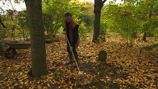 Monty gathers leaves