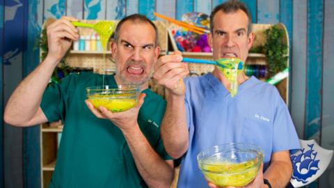 Dr Chris gets a soaking in the lab, but which doctor will get snotted in Ouchology?