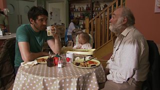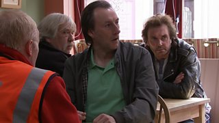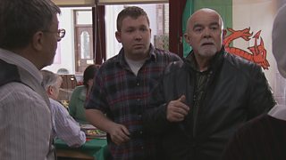 Caiff Iolo siom pan brynai Garry Rhif 7. Iolo’s disappointed when Garry buys No. 7.