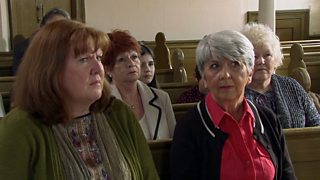 Daw’r pentref i wybod am Gwyneth. The villagers learn Gwyneth’s plans.