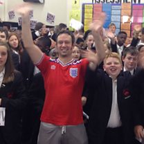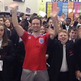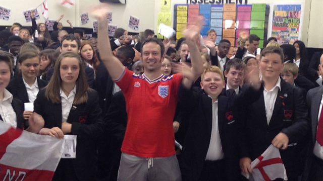 7,000 children from across the country record song to support England's World Cup efforts and help raise money for cancer research. Jasper Ward is the song's producer and spoke to 5 live Breakfast.