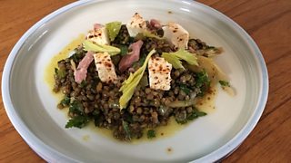 Paula cooks a tasty warm lentil salad.