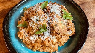 Recipe for Halloumi, Courgette and Mint Fritters with Tomato Quinoa