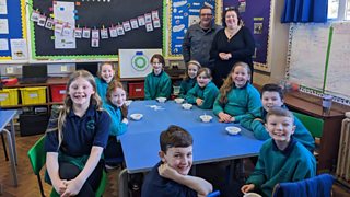 Paula and John went to Canrlough Controlled Integrated Primary to feed the Healthy Heroes