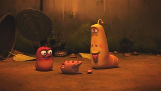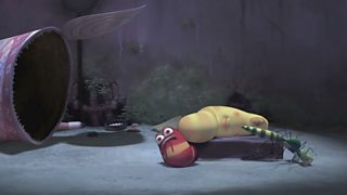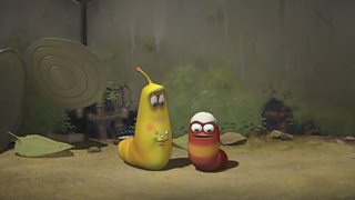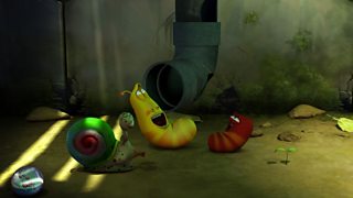 Mae Coch a Melyn yn gwneud hwyl am ben malwen am fod mor araf. Red and Yellow make fun ...