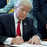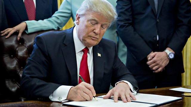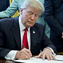 (Picture: Donald Trump signing executive orders; Credit: Getty Images)