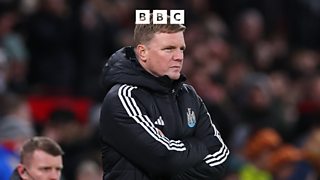 Eddie Howe reacts to Newcastle's 1-0 loss to Manchester United in the Premier League.