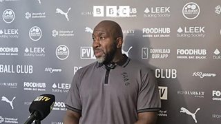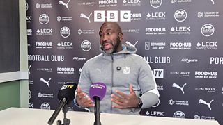 The Port Vale manager speaks to Phil Bowers after their 4-0 defeat to Bolton Wanderers.