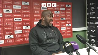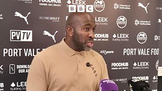 The Port Vale manager speaks to Phil Bowers after their 4-0 defeat to Bolton Wanderers.