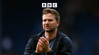 Plymouth Argyle Head Coach Tom Cleverley reacts to Burton win.