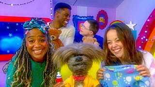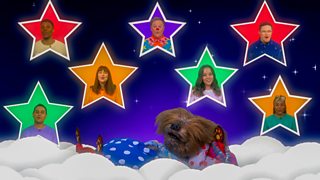 Dodge is fast asleep and dreams about his CBeebies friends singing him a bedtime song!