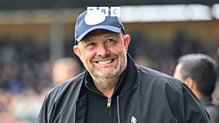 Manager Woodman speaks with BBC's Charlotte Richardson after their win against Barrow