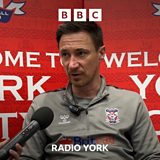York City manager Stuart Maynard speaking to Peter Spencer, ahead of their National League match against Morecambe.
