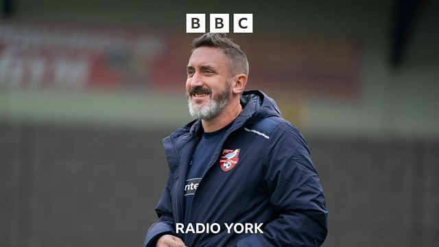 Scarborough Athletic manager Jonathan Greening speaking to Peter Spencer, ahead of their trip to Southport FC