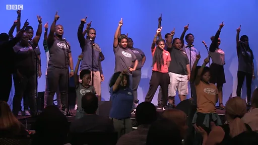 В небольшой офисной комнате около десяти подростков распеваются и танцуют - идет обычная репетиция. Через несколько дней у них выступление в Атланте.