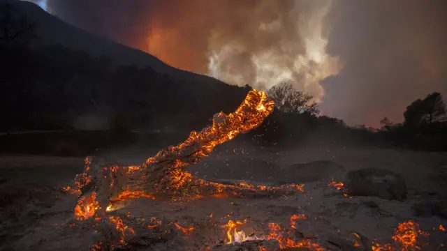 Быстрому распространению пожаров способствует многолетняя засуха, иссушившая деревья, почти сорокаградусная жара и сильный ветер.