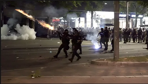 Жестоки сукоби демонстраната и полиције трајали су неколико ноћи у низу - уз један дан мирног протеста када се седело на платоу испред Народне скупштине.
