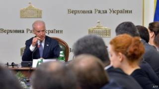 Рӯзи сешанбеи 22 апрел, Ҷу Бойден, муъовини раиси ҷумҳурии Омрико, ки рӯзи гузашта вориди Киев, пойтахти Укройн, шудааст, ба манзури ибрози ҳимоят аз давлати интиқолии ин кишвар, бо Александр Турчинов, раиси ҷумҳурии муваққати Укройн ва теъдоде аз намояндагони порлумони он кишвар дидор кард.