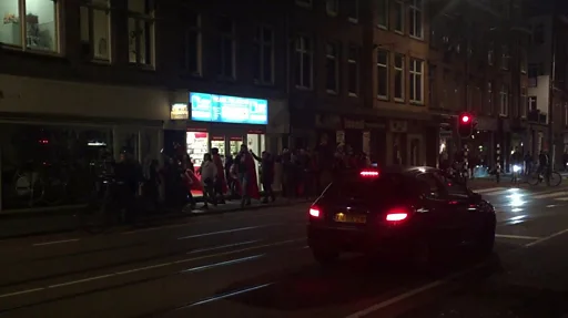 Tam o sırada, Türk bayraklarına sarınmış, 17-18 yaşındaki gençler, "Faşist Hollanda, sabrımızı taşırma", "Ne mutlu Türküm diyene", "Recep Tayyip Erdoğan" sloganları ve tekbir sesleri ile ilerliyor.