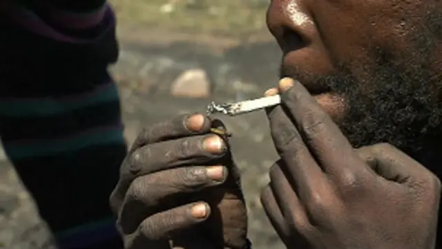 Nyaope bağımlısı 32 yaşındaki Kabelo, "Küçükken önce esrar içmeye başladık. Daha sonra daha ağır uyuşturucuları denerdik. Bugünlerde gençler doğrudan nyaope kullanmaya başlıyor." diyor.