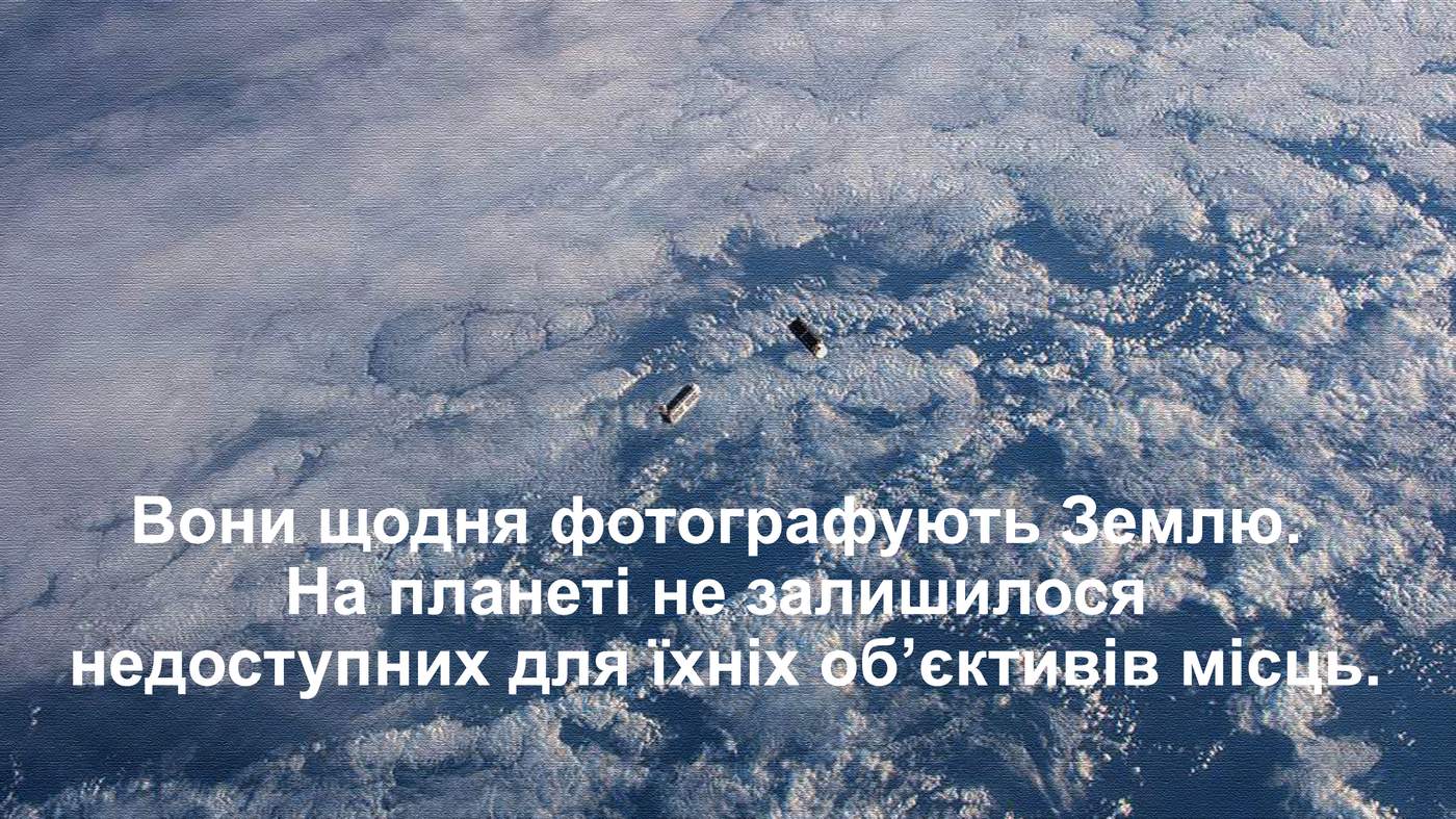 Навколо Землі над нашою головою обертається приблизно півтори тисячі супутників. Об'єм зібраної ними інформації збільшується на очах - як і кількість охочих заробити на її опрацюванні, поясненні та поширенні.
