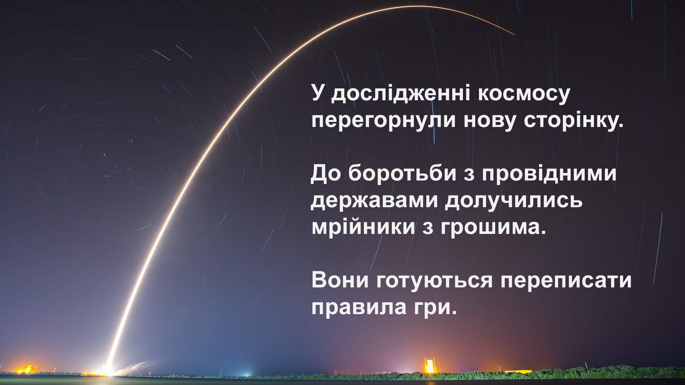 Приватні компанії долучилися до зіркових перегонів. Вони створюють нові ракети та супутники - дешеві й легкі - та обіцяють людству доступний космос.