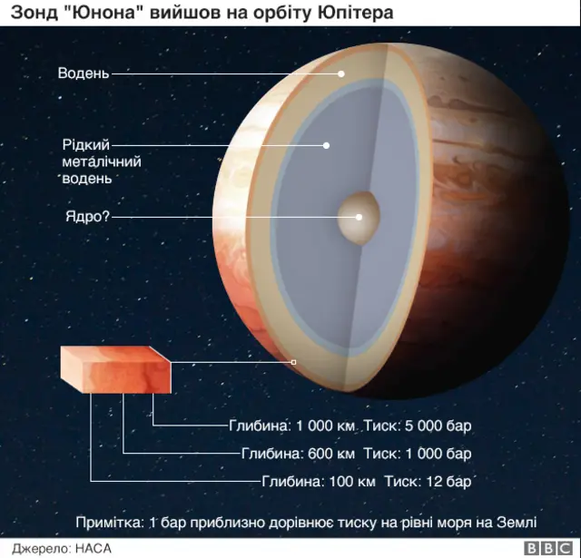 За допомогою інструментів, які працюють в інфрачервоному і мікрохвильовому діапазонах, "Юнона" виміряє теплове випромінювання, яке виходить із глибин планети.