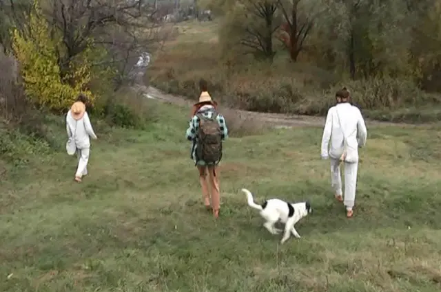 А поки собака пильно чатує своїх супутників: насправді лагідна, "для порядку" зустрічає чужих гавканням, але несердитим. Вона долає утричі довший шлях, ніж її друзі: встигає забігти далеко вперед, повернутися, і збігати назад – пересвідчитись, що не пропустила чогось важливого.
