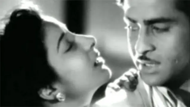 اور دونوں پر فلمایا گیا فلم ’برسات‘ جو 1949 میں بنی کا وہ منظر تو سب کو یاد ہے جس میں نرگس راج کپور کی باہوں میں آ کر گر جاتی ہیں۔