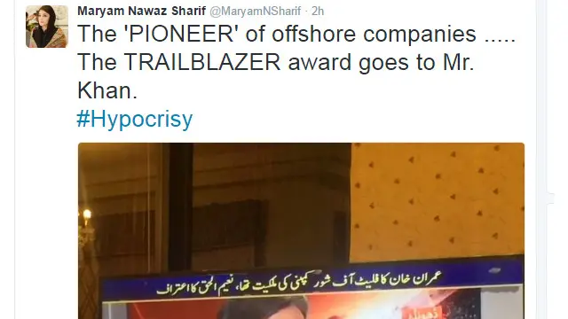 عمران خان کے بیان کے ردعمل میں حکمراں جماعت پاکستان مسلم لیگ ن کی رہنما مریم نواز نے عمران خان کو آف شور کمپنیوں کا ’بانی‘ قرار دیا ہے۔ جبکہ پاکستان میں سوشل میڈیا پر عمران خان کے اسی بیان سے متعلق موضوعات ٹوئٹر پر ٹرینڈ کر رہے ہیں۔