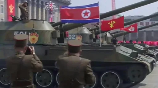 اس موقع پر پیانگ یانگ میں سنیچر کو فوجیوں، ٹینک اور اسلحے کی پریڈ کی گئی۔