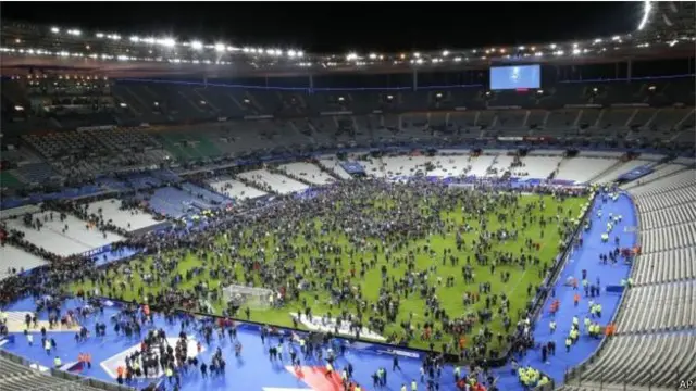 سٹیڈیم میں میچ دیکھنے کے لیے فرانس کے صدر بھی موجود تھے لیکن انھیں سٹیڈیم سے بحفاظت نکال لیا گیا ہے۔
